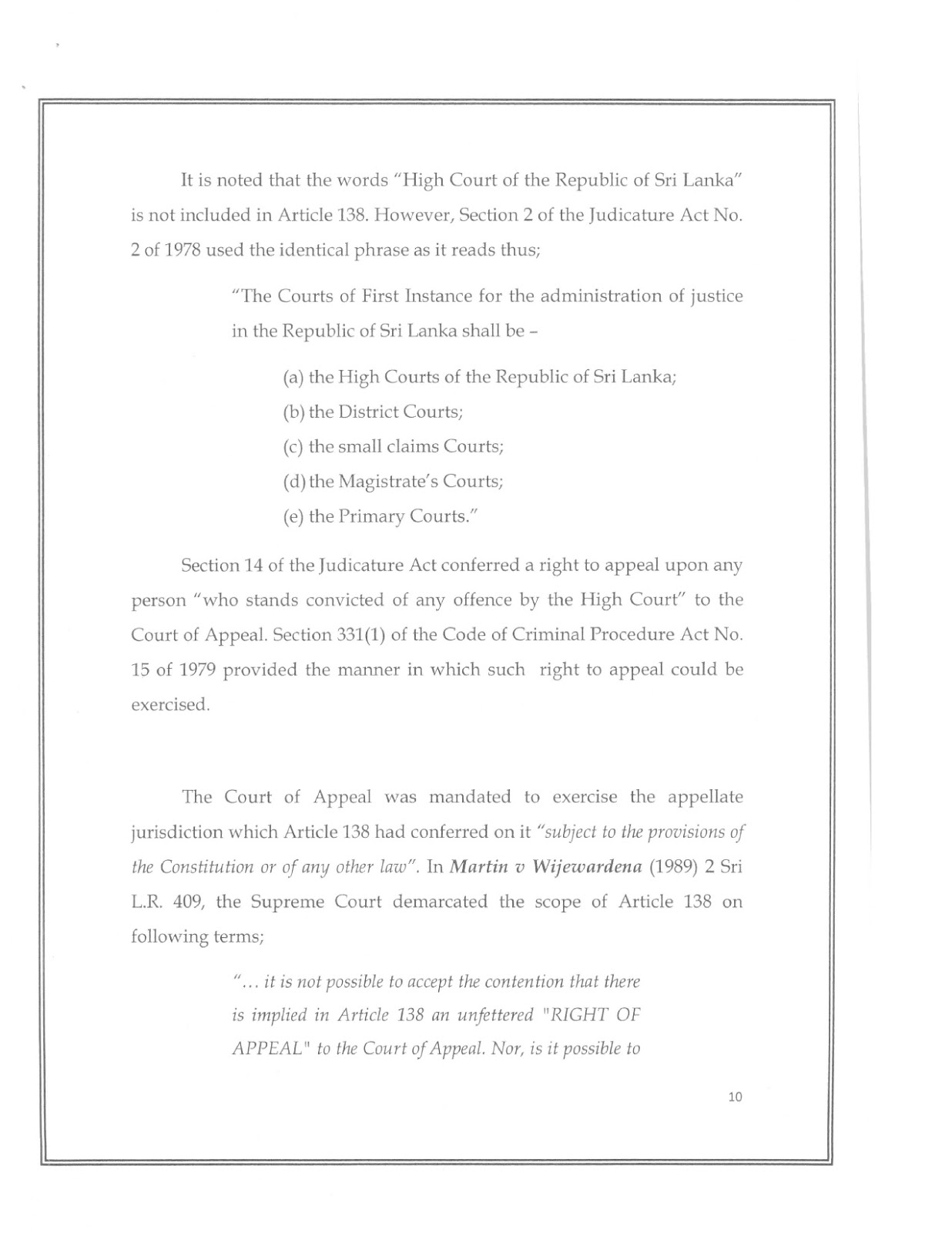 Law of Revision - jurisdiction of the Court of Appeal - Art:138 of the Constitution - revision against an order made by a trial at Bar - Judicature (Amendment) Act No. 9 of 2018 - it is clear that when the right of appeal is conferred on the Supreme Court, the powers of revision could not be vested within an inferior Court.